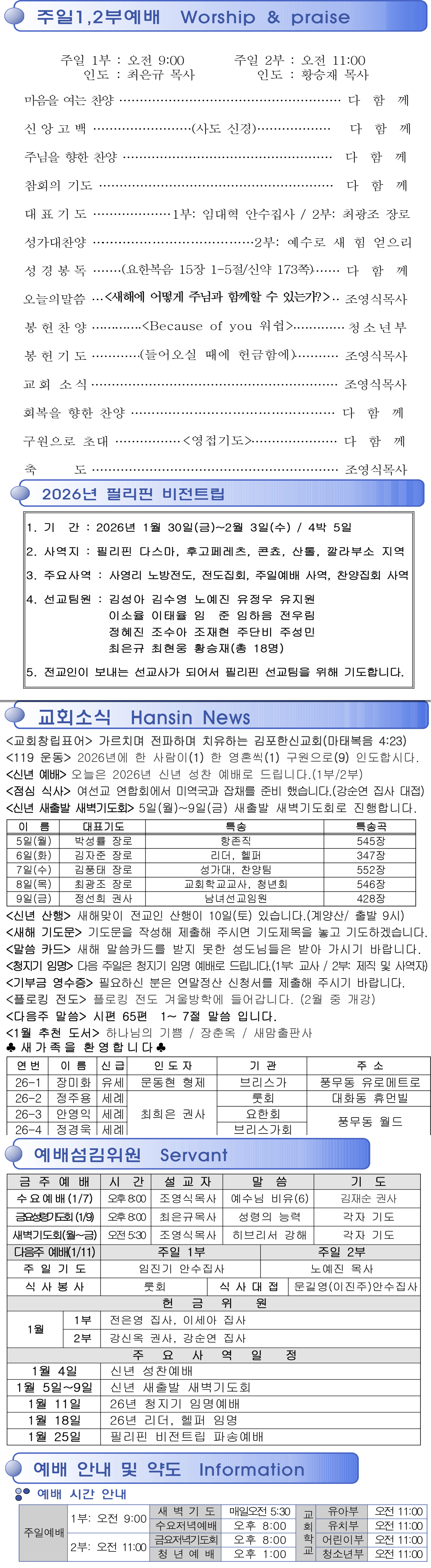 2026년 1월 4일 교회주보