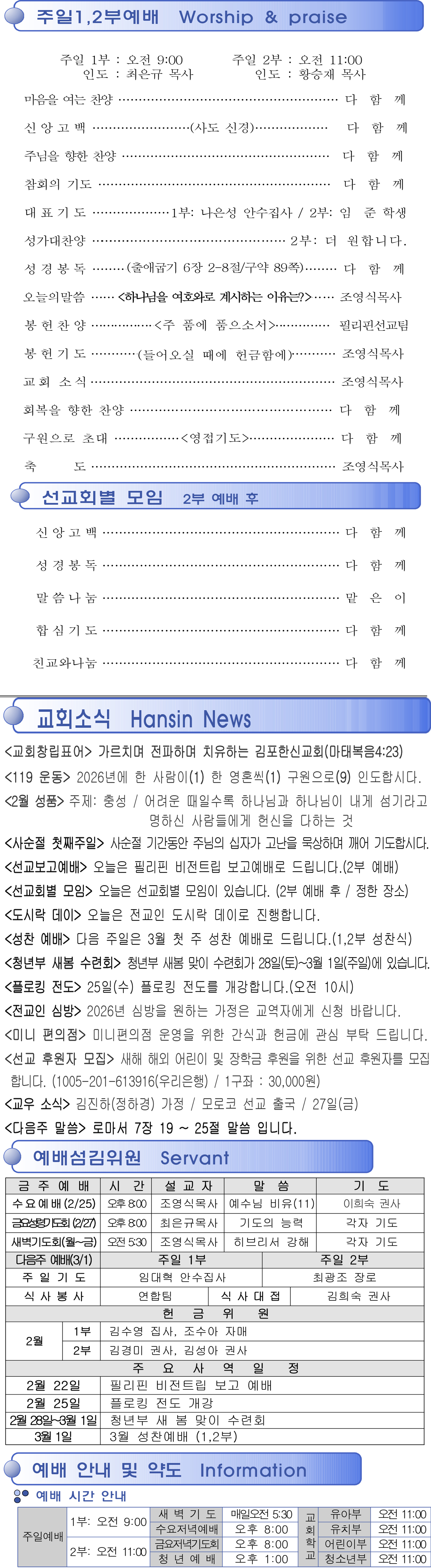 2026년 2월 22일 교회주보