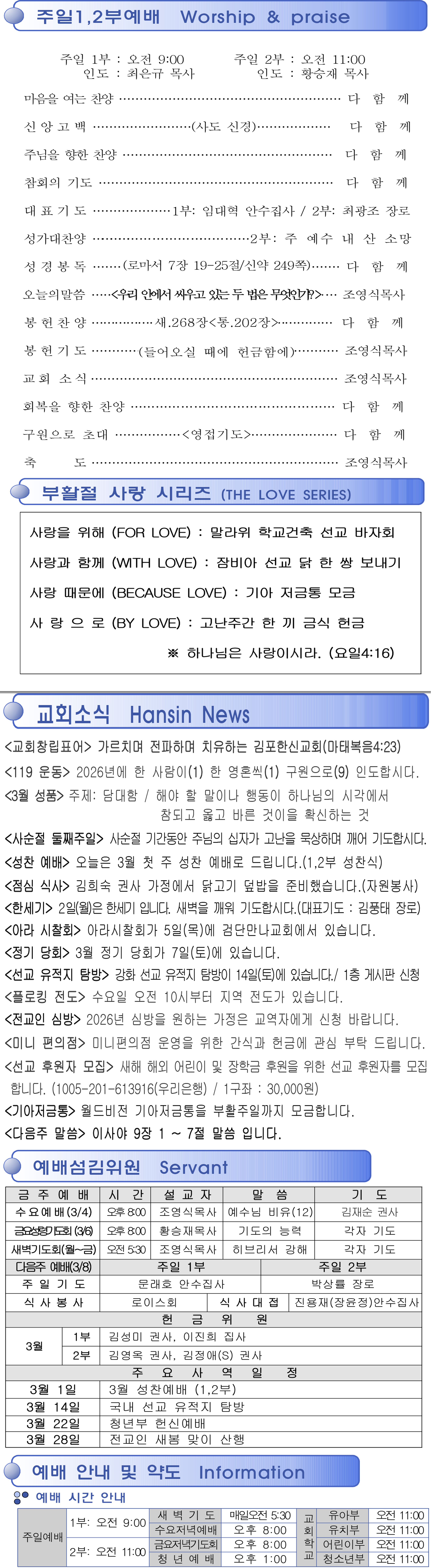 2026년 3월 1일 교회주보
