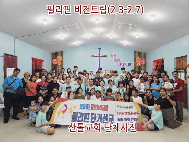 | 다음글 | 필리핀 비전트립 (후고페레즈, 다스마 교회 사역) | 황승재 | 2024.02.16 | 0 | 492 |