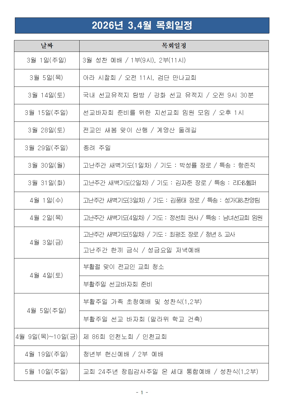 2026년 3, 4월 교회일정 입니다 황승재 2026-03-11 추천 0 댓글 0 조회 13 http://kimpohansin.onmam.com/bbs/bbsView/15/6615173 첨부파일 (0) 0