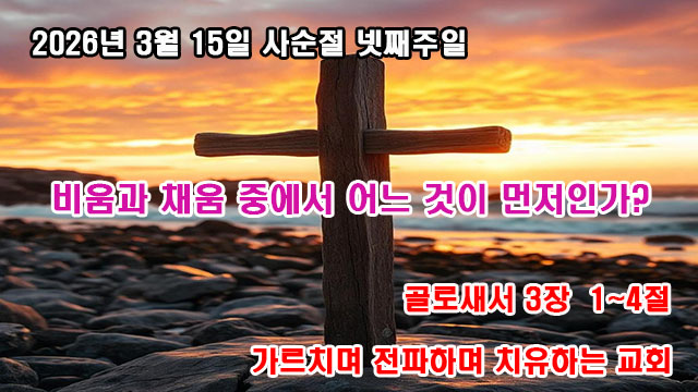 | 다음글 | 김포한신교회 2026년 3월 8일 사순절 셋째주일 | 황승재 | 2026.03.08 | 0 | 219 |